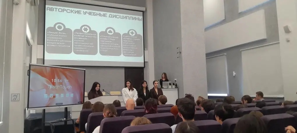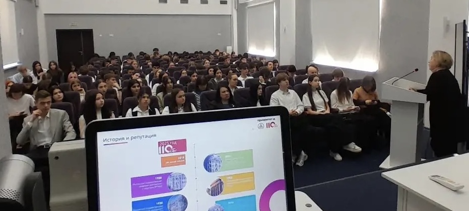 Встреча была организована в новом, содержательно насыщенном формате. Модератором события выступила доцент Академии психологии и педагогики ЮФУ, руководитель Информационно-консультационного центра проекта «Образовательный кластер ЮФО» Марина Евгеньевна Кореневская. В своем выступлении Марина Евгеньевна не только познакомила участников с историей и традициями Южного федерального университета, но и раскрыла ценностные основания университетского образования, его академическую культуру и роль ЮФУ в образовательном пространстве региона и страны. Особое внимание было уделено позициям университета в мировых рейтингах, а также презентации образовательных программ бакалавриата и специалитета набора 2026 года, что позволило школьникам сформировать более целостное представление о возможностях обучения в ЮФУ.