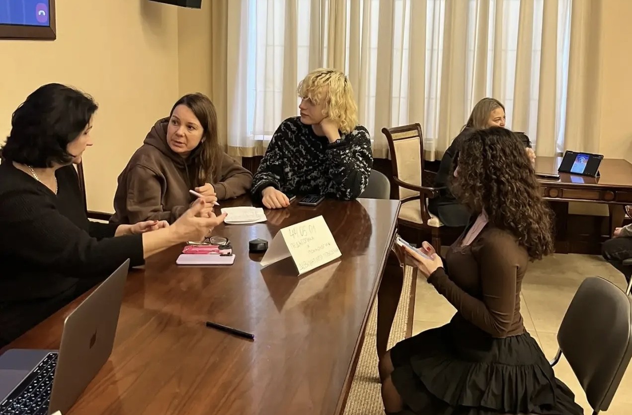 Вторым тактом встречи стала работа презентационных площадок структурных подразделений Южного федерального университета, реализующих направление подготовки 44.00.00 «Образование и педагогические науки». Представители структурных подразделений презентовали образовательные программы набора 2026 года, а также провели индивидуальные консультации абитуриентов. В презентации приняли участие: Академия психологии и педагогики (М. Е. Кореневская, Г. В. Карантыш, Д. А. Лебедев, Г. Л. Руденко, А. И. Шатохин, А. В. Соковикова, И. И. Дроздова, Е. Н. Новохатько, В. С. Голова, В. Ф. Богуславская, А. А. Доника), Институт филологии, журналистики и межкультурной коммуникации (О. О. Мирошникова), Институт истории и международных отношений (В. В. Лобова), Институт наук о Земле (А. Б. Эртель), Институт математики, механики и компьютерных наук им. И. И. Воровича (В. В. Махно, И. А. Шкурай), Физический факультет (И. В. Шишлов), Академия биологии и медицины им. Д. И. Ивановского (Д. И. Мощенко).