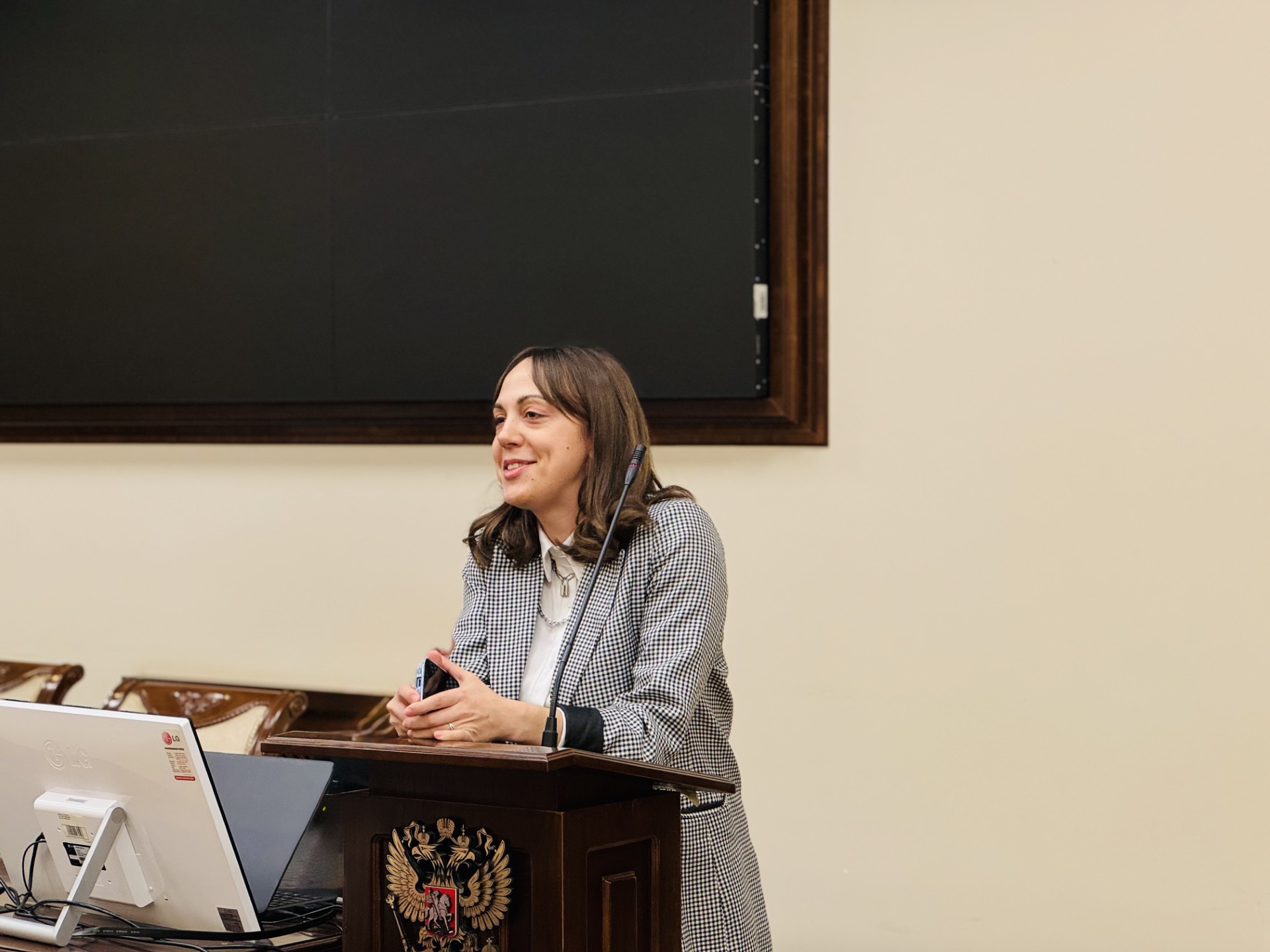 Начальник профессиональной навигации и приема ЮФУ Юлия Владимировна Лихачева в своём выступлении рассказала об особенностях поступления в Южный федеральный университет в 2026 году, дала рекомендации по подготовке к поступлению и обратила внимание на ключевые моменты, влияющие на успешность абитуриента, включая индивидуальные достижения, которые могут приносить дополнительные баллы. В завершение она пожелала будущим студентам удачи и успешного поступления в университет.