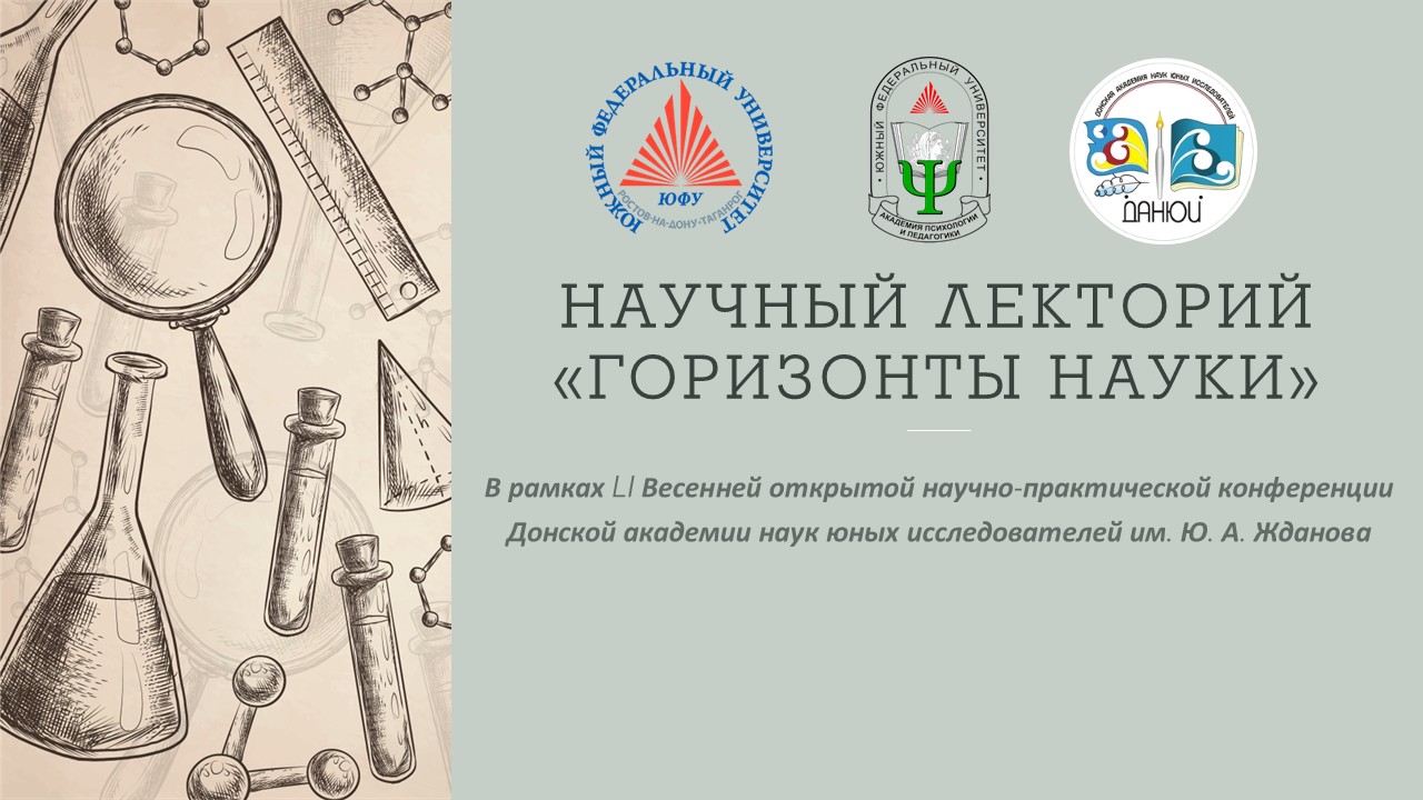 Донская академия наук юных исследователей им. Ю. А. Жданова стартует 27 марта 2026 года. 51 раз Дворец творчества детей и молодежи соберет юных исследователей и их наставников на весеннюю открытую научно-практическую конференцию. Традиционно все эти годы в день открытия конференции Южный федеральный университет готовит лекторий «Горизонты науки» для юных исследователей. В 2026 году лекторий пройдёт в новом формате: он будет подготовлен силами ярких студентов и их наставников – сотрудников Южного федерального университета.