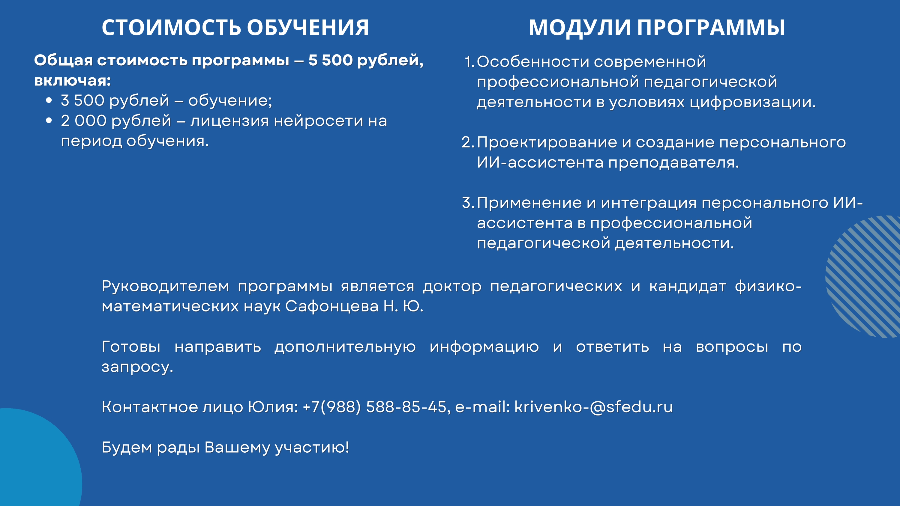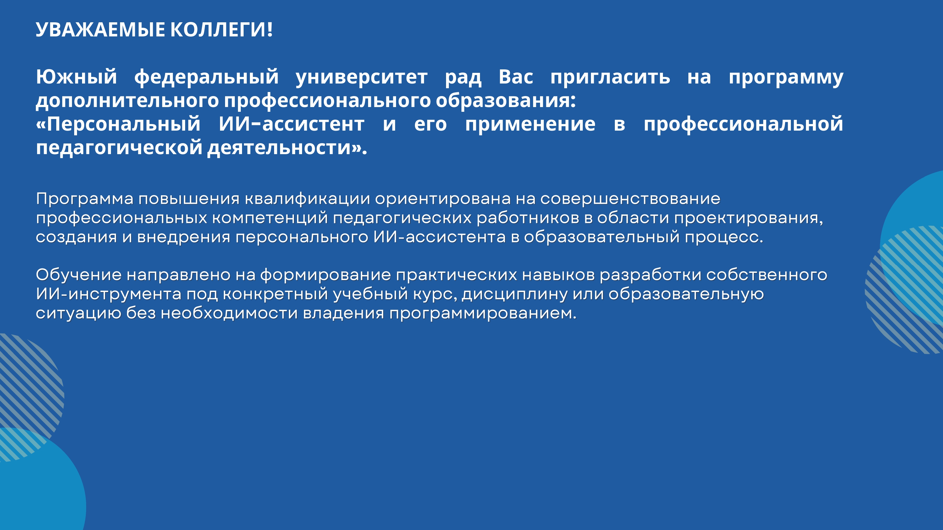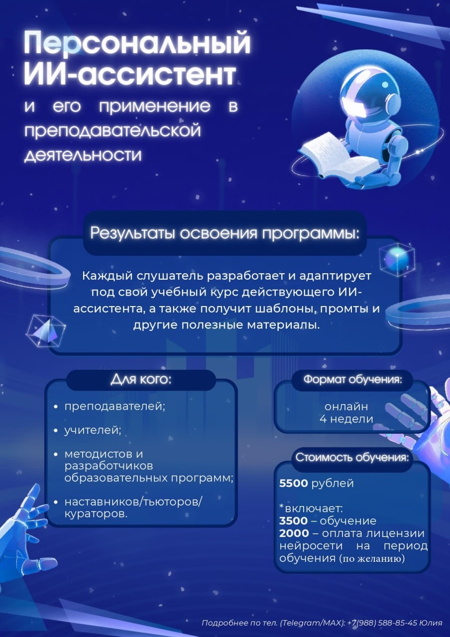 ЮФУ приглашает на программу ДПО «Персональный ИИ-ассистент и его применение в профессиональной педагогической деятельности»