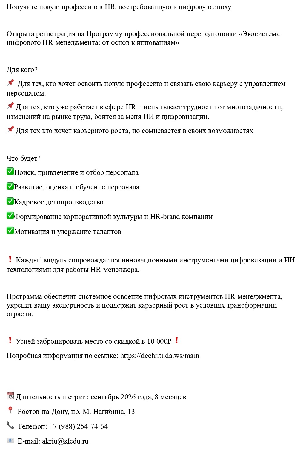 Программа дополнительного образования «Получите новую профессию в HR»