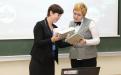 Екатерина Киселева вручает Федорову М.П., проректору по педагогическому образованию, подарок от руководства ЮФУ для ректора СВФУ